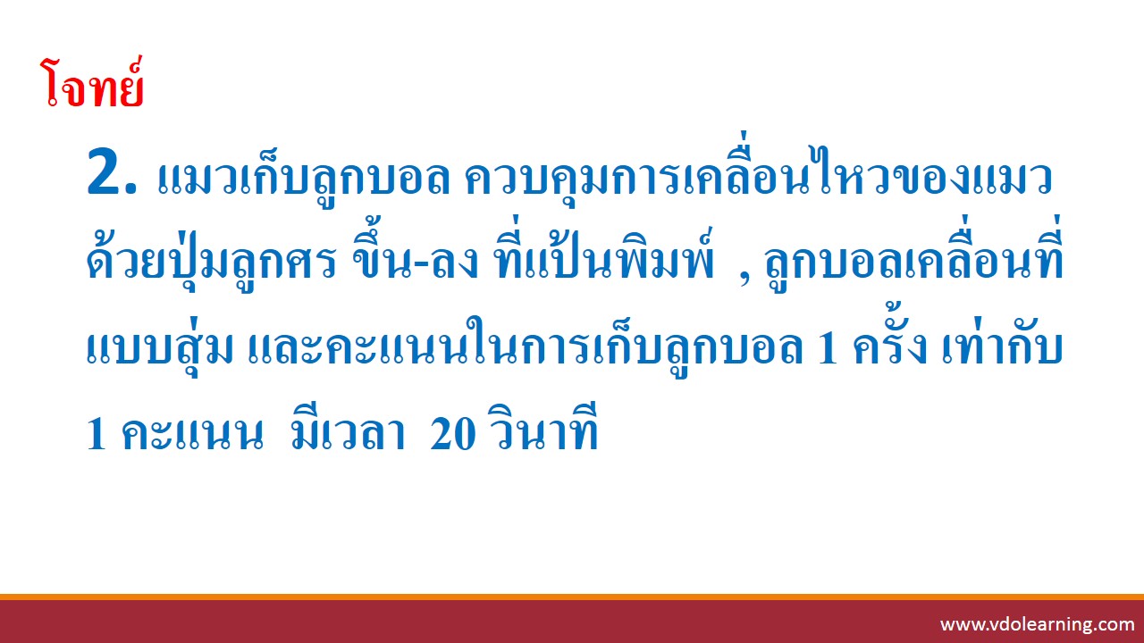 Scratch ป.6 สสวท. ค้างคาวกินกล้วย มีรายละเอียดของเนื้อหาเกี่ยวกับการเขียนโปรแกรมแบบมีเงื่อนไข การเขียนโปรแกรมเพื่อสุ่มค่า การเขียนโปรแกรมตรวจสอบการกดแป้นพิมพ์จากผู้ใช้ และการตรวจสอบและแก้ไขข้อผิดพลาดของโปรแกรม ซึ่งในบทเรียนนี้นักเรียนจะได้รู้จักกับบล็อกคำสั่งที่ใช้สร้างเกมผู้รักษาประตูกับหนูน้อยหมวกแดงเก็บแอปเปิ้ล รายละเอียดของบล็อกคำสั่งมีดังนี้