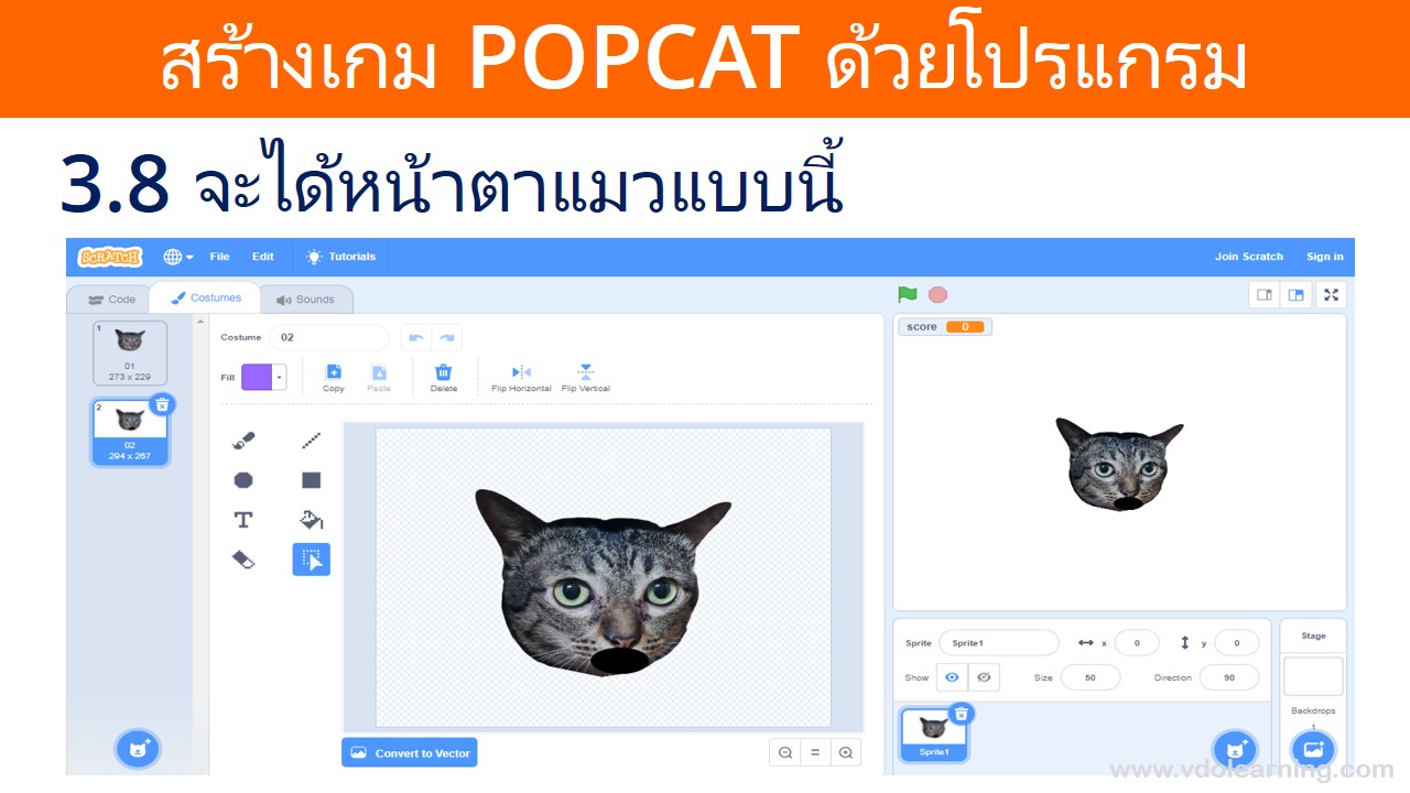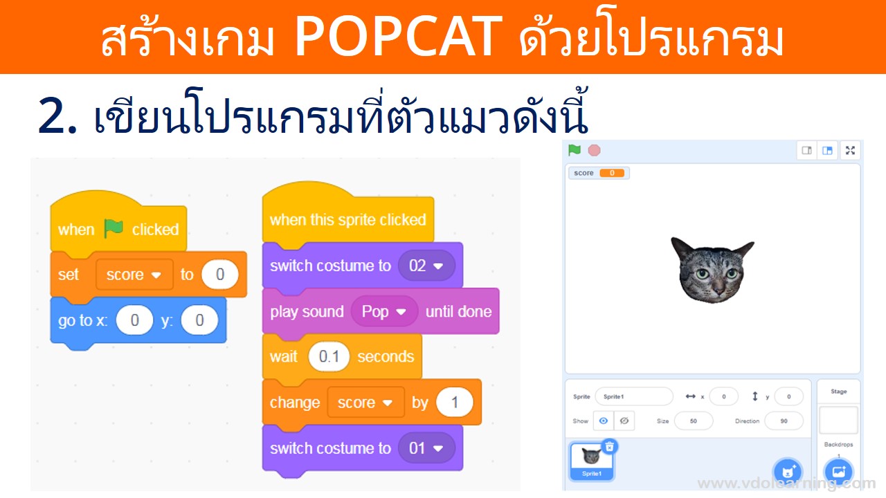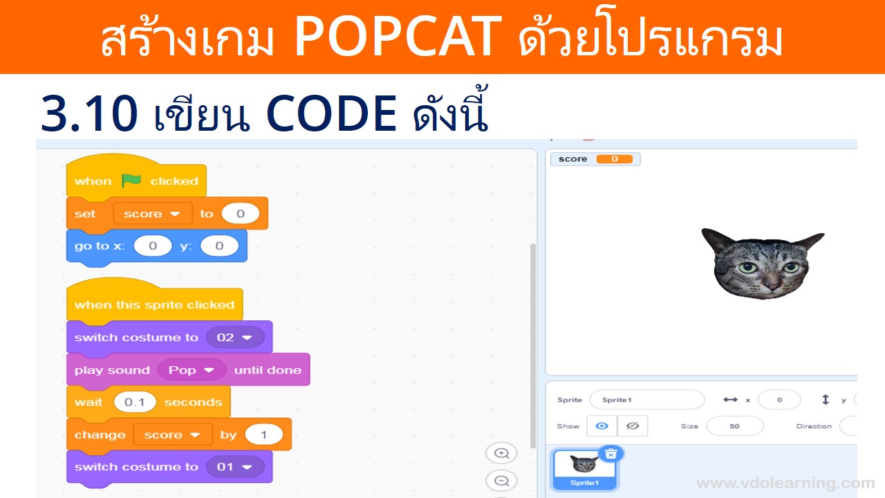 สร้างเกม POPCAT ด้วยโปรแกรม Scratch