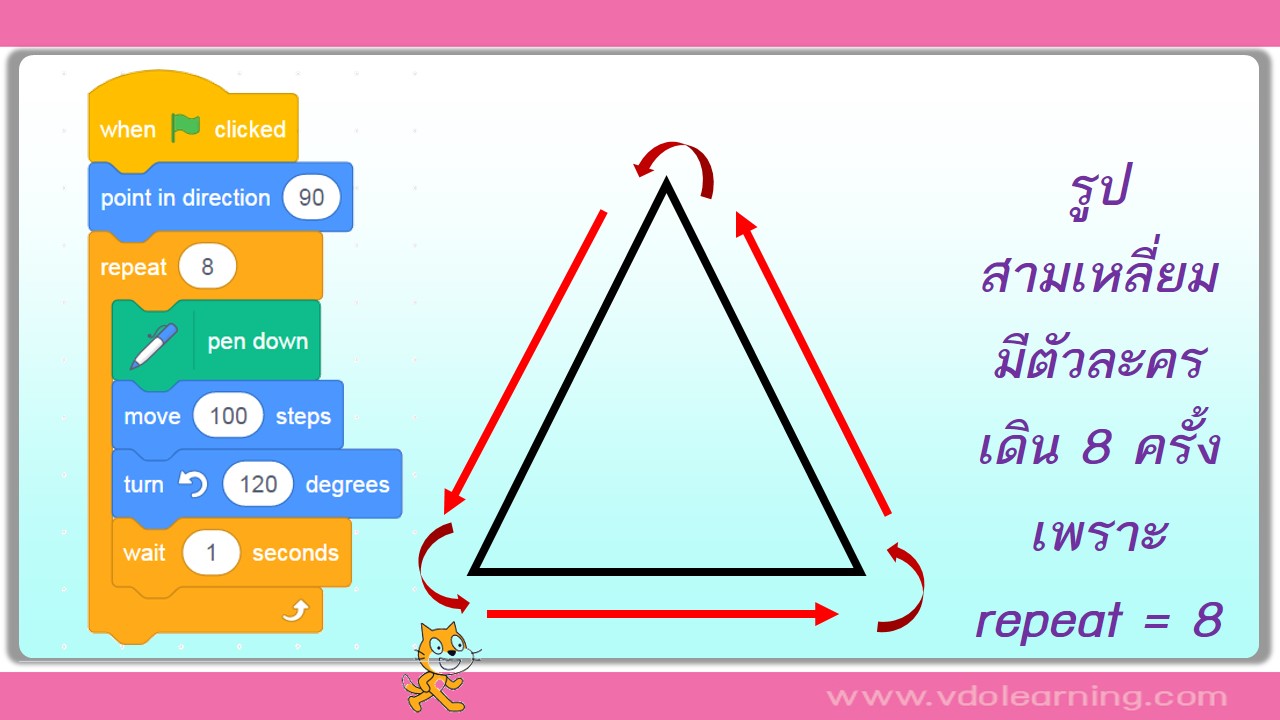 ตัวละครในโปรแกรม Scratch เดินเป็นวงกลม