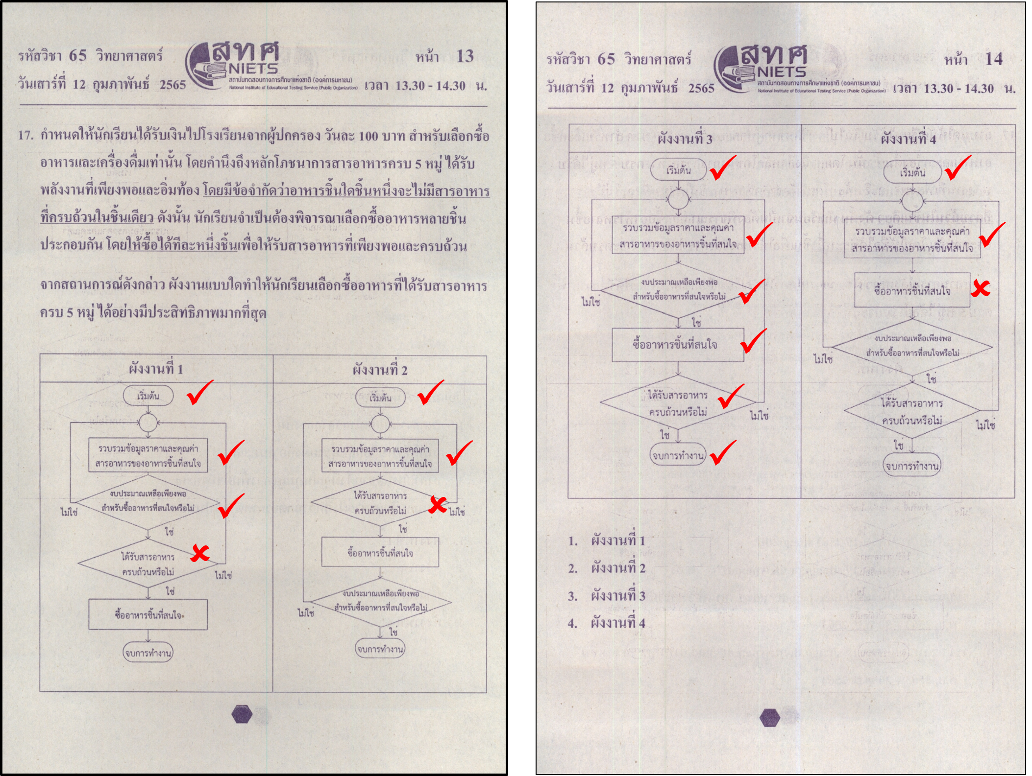 ดังนั้น นักเรียนจะสังเกตได้ว่า ผังงานที่ 1 , 2 , และ 4 มีการเรียงลำดับขั้นตอนที่ไม่ถูกต้อง ดังนั้นคำตอบที่ถูกต้อง จึงเป็นผังงานที่ 3 ข้อนี้จึงตอบข้อ 3 นะคะ