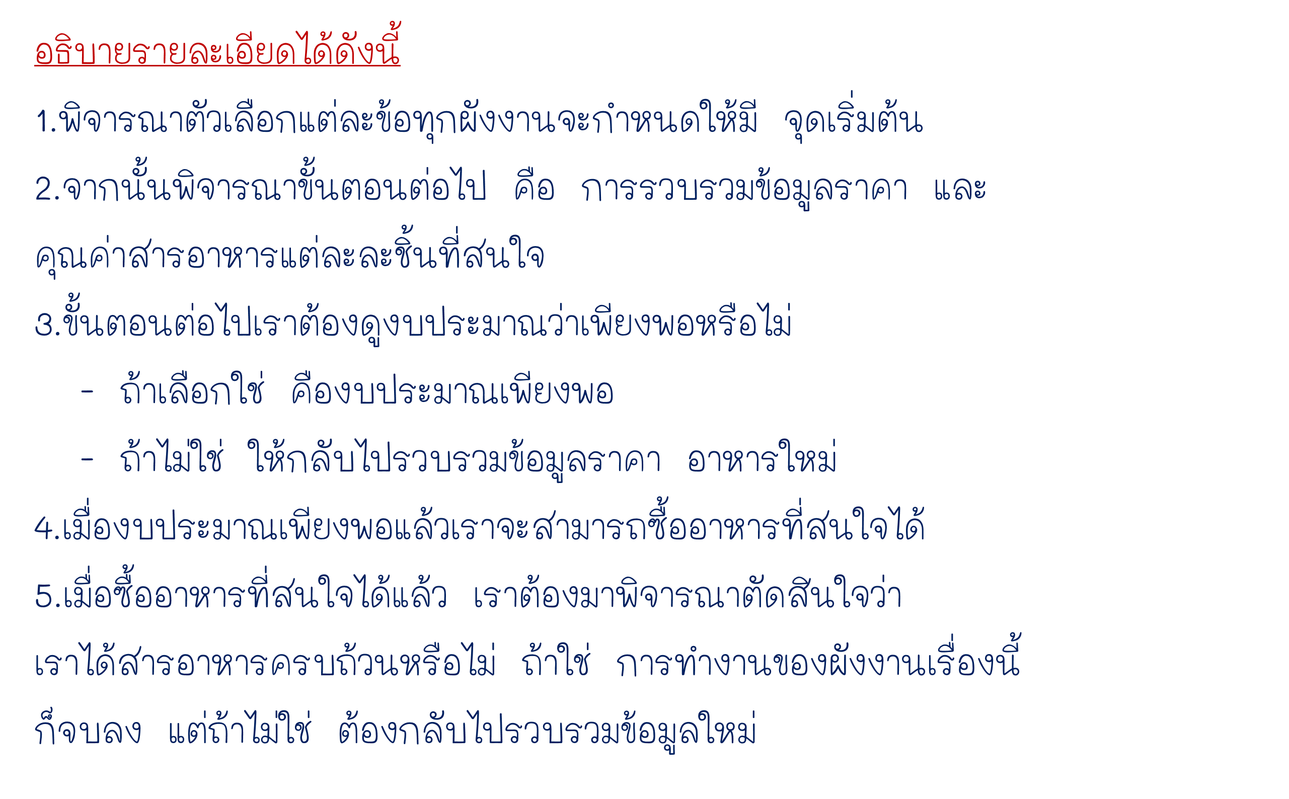 4.เมื่องบประมาณเพียงพอแล้วเราจะสามารถซื้ออาหารที่สนใจได้