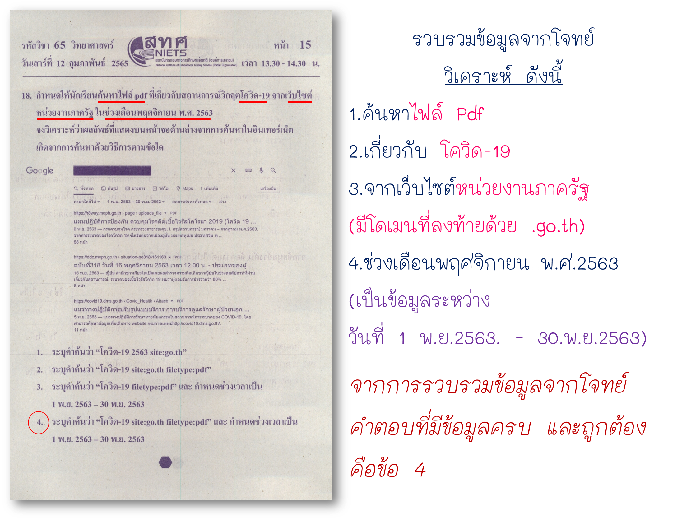 ข้อ 18 โจทย์ได้กำหนดความต้องการ คือ ให้ค้นหาไฟล์ PDF โดยสรุปเงื่อนไขได้ดังนี้