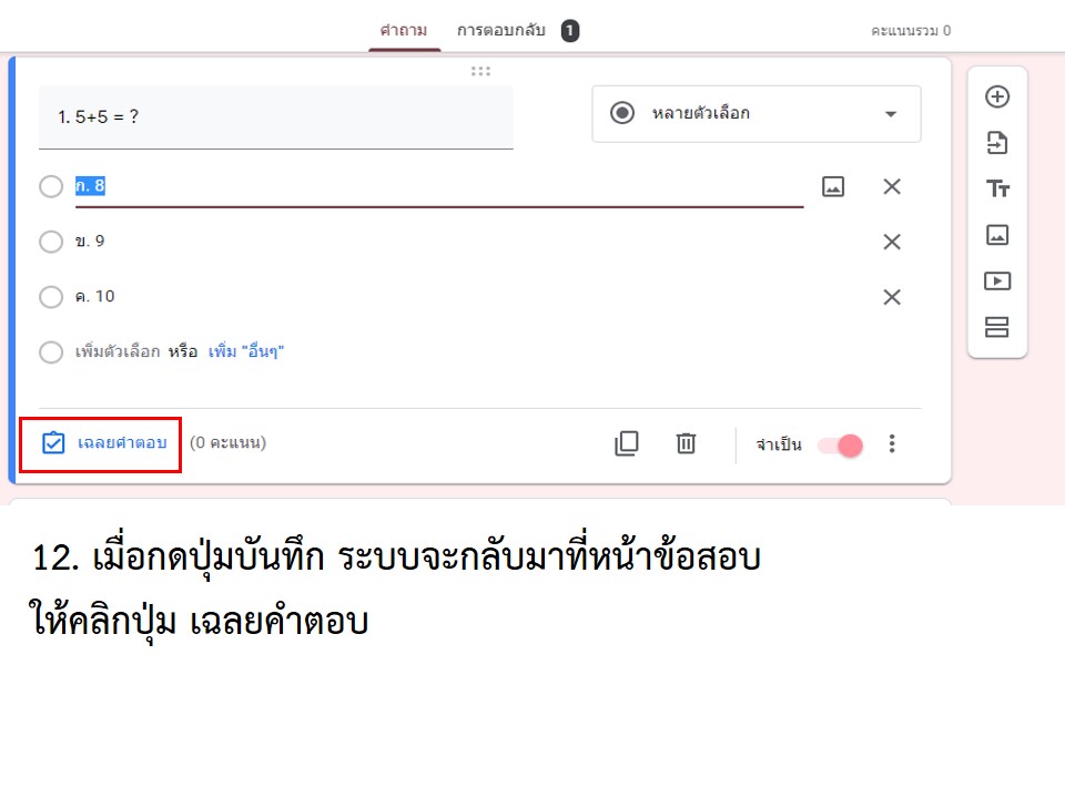สร้างข้อสอบออนไลน์ พร้อมตรวจคำตอบให้คะแนน และเฉลยคำตอบได้ทันที ด้วย Google Form มีขั้นตอนการสร้างดังนี้